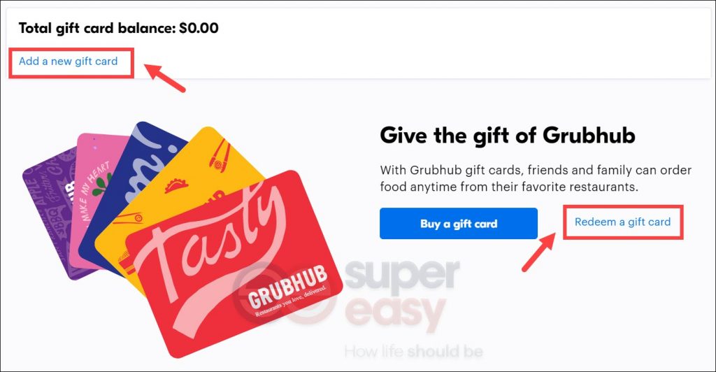 How to Give and Redeem a Grubhub Gift Card | Gigworker.com To order a gift card, first head to Grubhub.com. Log in to your account, then head to the top right corner of the site and click on your name to see your personalized menu. Once there, you'll see the option for gift cards. Once you're on the gift card page, you've got several options to send a gift card to someone.