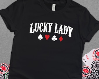 Lucky Lady Playing Card Shirt, Gambler Shirt, Poker Card Player Gift, Bridge Player Gift Idea, Vegas Casino Gambler Gift Unisex Tee