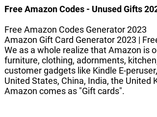 Free Amazon Gift Card Codes Generator Updated 2022 FREE Amazon Gift Card Codes [Nov 2022] Codes Generator. November 28, 2022, by Mike. Amazon Gift Card Free. Amazon Gift Card Tricks, Amazon Gift Card Free Codes - Amazon Gift cards are plastic with a built-in microchip loaded with an amount of money that is normally not very high to make purchases or payments defined by the National Commission for the Protection and Defence of Users.