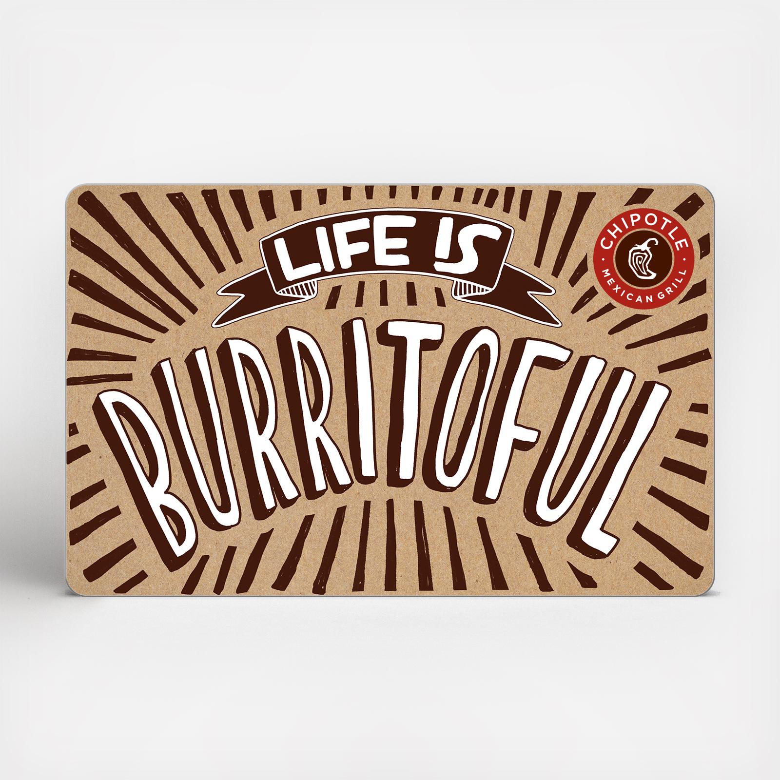 Amazon.com: Chipotle Gift Card $50 : Gift Cards Legal Disclaimer. Treat your gift card like cash, that may only be used for making purchases at Chipotle restaurants. Not redeemable for cash except as required by law; additionally, upon request, unredeemed balances of less than $10.00 will be redeemed for cash. Buy Chipotle eGift Cards | Kroger Chipotle Gift Card eGift Physical $25 $ Description Chipotle is one of the most popular Mexican diners in the US. It's as famous for its lively atmosphere as it is for its big burritos, tasty tacos and sumptuous salads. If you know someone who loves Mexican food, you can't go wrong with a Chipotle gift card. How To Check a Chipotle Gift Card Balance Hassle-Free - DoNotPay You can redeem your gift card in any of Chipotle's 2,770 locations across the U.S. by presenting it as you pay. For online purchases, you should enter the card number as you check out. How Can You Check the Balance of Your Chipotle Gift Card? You can check the remaining balance on your Chipotle gift card in two ways: Online In store Online Buy Chipotle Gift Cards | Gyft Redeem online & in-store. Chipotle offers a focused menu of burritos, tacos, burrito bowls and salads made from fresh, high-quality raw ingredients, prepared using classic cooking methods and served in a distinctive atmosphere. ... We are the #1 trusted mobile gift card app where you can easily upload, buy, and redeem gift cards in stores or ...